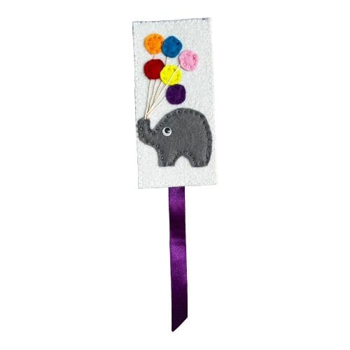 Semn de carte cusut manual 20×10 cm Elefantel cu baloane