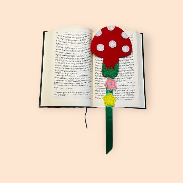 Semn de carte cusut manual 20×10 cm Ciupercuta cu buline