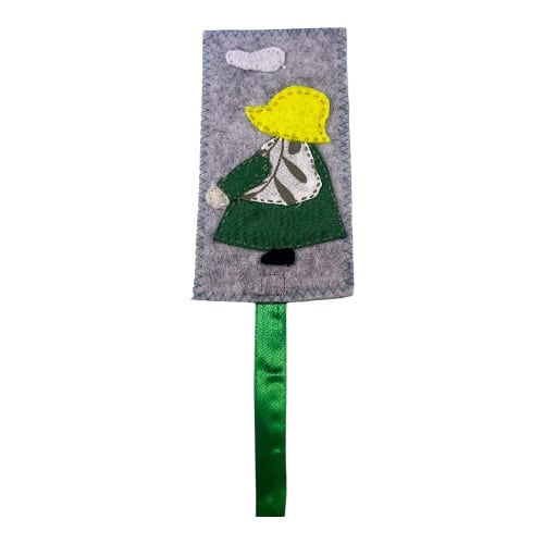 Semn de carte cusut manual 20×10 cm Doamna cu palarie galbena