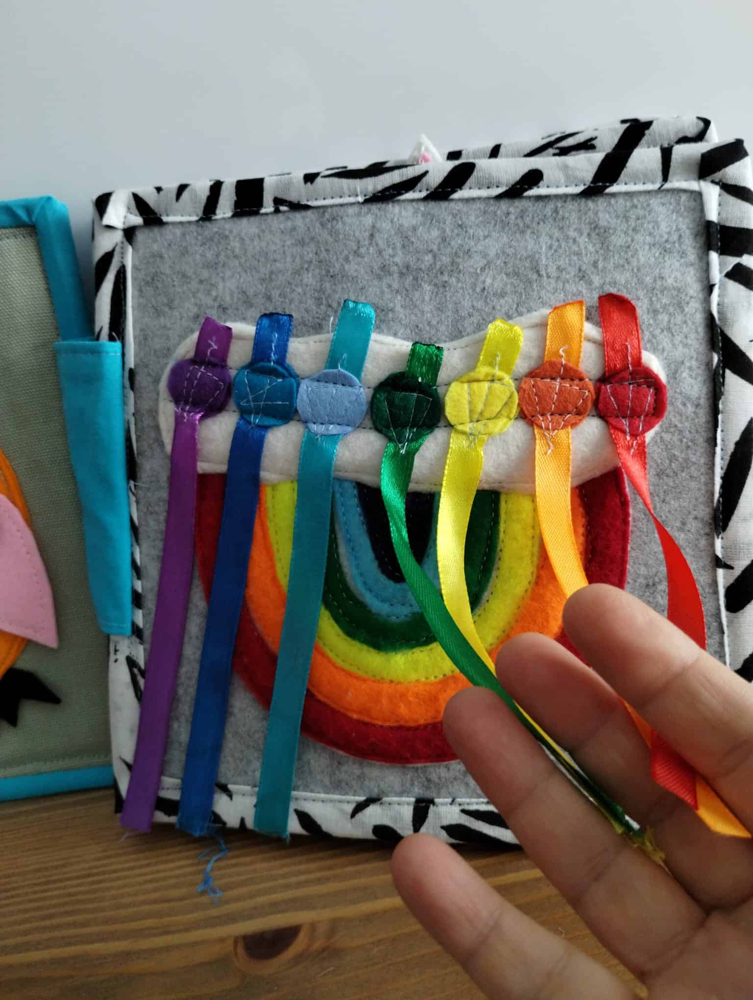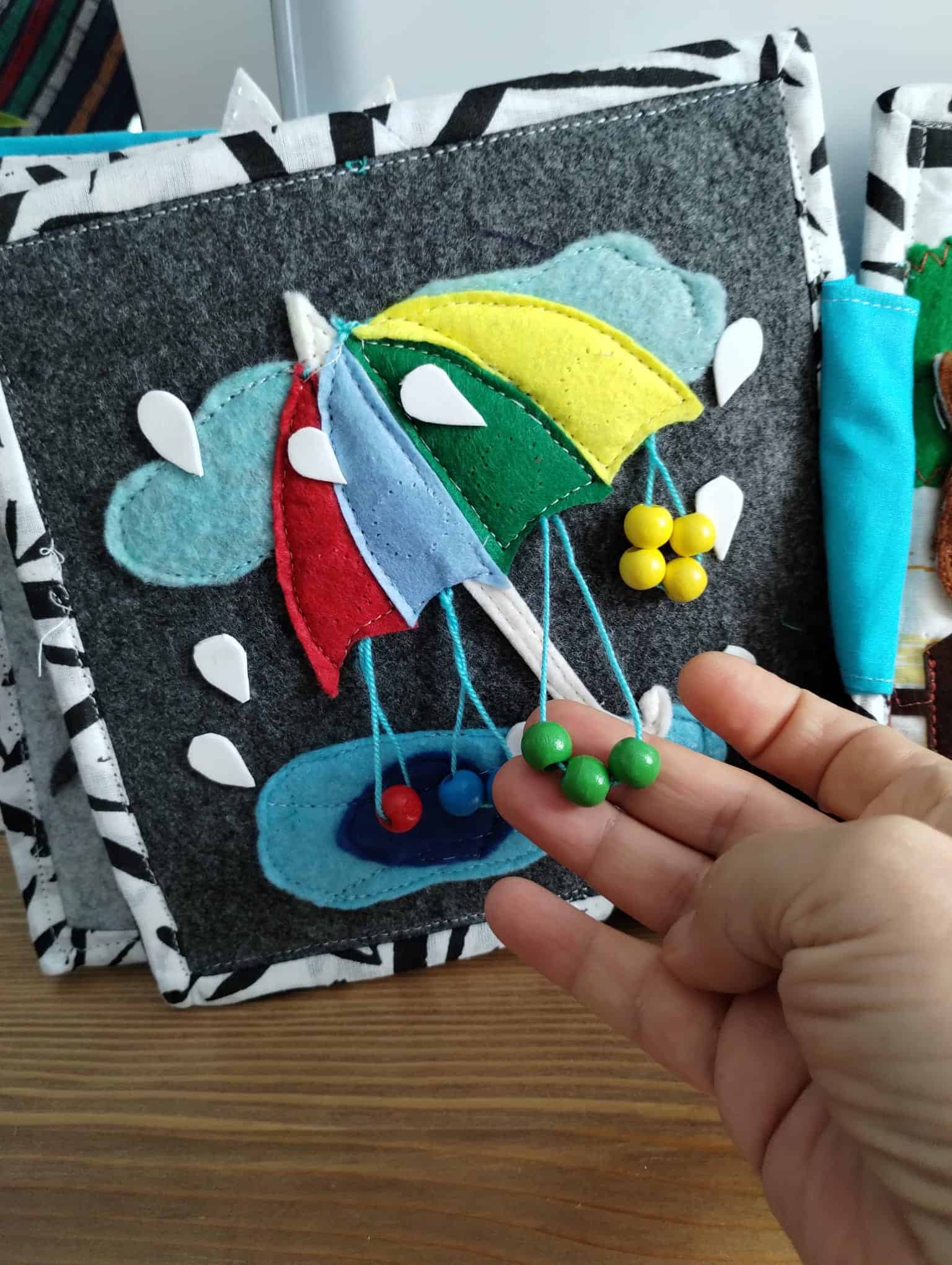 Cartea noastră liniștită include activități precum nasturi, fermoar, legare și sortare, care ajută copilul să-și dezvolte abilitățile motorii fine și să îmbunătățească coordonarea mână-ochi.