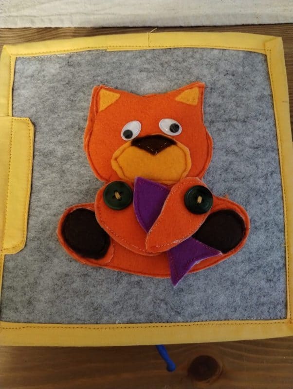 Cartea noastră liniștită include activități precum nasturi, fermoar, legare și sortare, care ajută copilul să-și dezvolte abilitățile motorii fine și să îmbunătățească coordonarea mână-ochi.