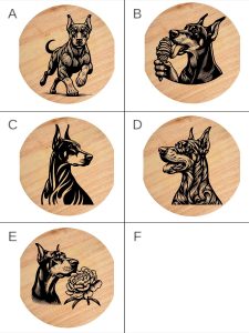 Tablou gravat pe lemn, tocator de lemn caine DOBERMANN