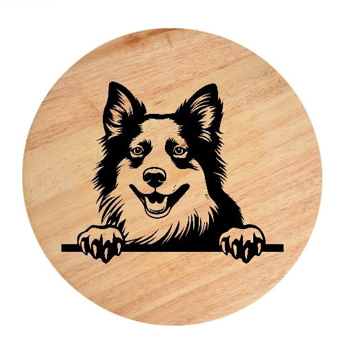 Tablou gravat pe lemn, caine rasa ‘ICELAND SHEEPDOG’